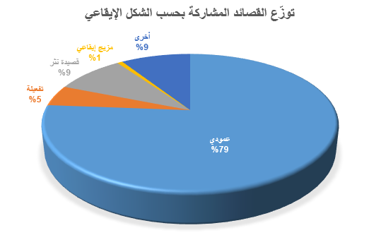 في سياق متصل، تبدو المشاركات ضمن فئتي القصيدة الحديثة (66 نصاً) والقصيدة الكلاسيكية (63 نصاً) متقاربةً أيضاً عددياً، مع ميل نسبي أعلى إلى النص الحديث.